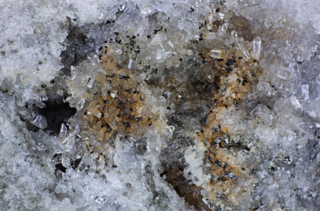 Anatase, Quartz, Wheal Remfry China Clay Pit, Cornwall August 20, 2025 Pendleton Cornwall Mineral Details Wheal Remfry China Clay Pit, FraddonTiny sharp dark anatase crystals with colourless quartz crystals.JP2017 Anatase, Quartz, Wheal Remfry China Clay Pit, Fraddon, St Enoder, Cornwall, England, UK. Width of view 11.5mm.